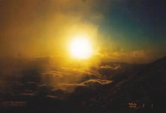 三箇日が土日と重なり、今年の正月は休みが短かった。そこで、参加し易さを考えて、今年の正月合宿の場所には八ヶ岳を選んだ。その狙いがあたってか例年に無い多数の参加者を得た。行者小屋のベースに12名、蓼科山からの縦走組に3名、本沢温泉・硫黄岳からの縦走組に3名、合計18名となり、集中日の元旦の夜は大いに盛り上がり、賑やかな合宿となった。天気は期間を通して概ね良好で、ガスが出て一時は無理かと思われた初日の出も、深いガスの中にフッと顕れる神秘的な日の出となった。おかげで稜線の反対側にブロッケンを、頂上直下でダイヤモンドダストを見ることができた。