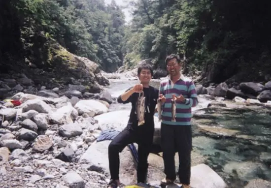これに味をしめ、翌日は昨日の幕営予定地だった白金沢出合まで釣りながら遡行する。いたるところに魚影があり、あっという間にビクいっぱいに。それもほとんど尺もしくは尺近い立派なものばかりなので、25cm以下は惜しみなくリリース。いやぁ、こりゃアブさえいなきゃ楽園だねぇ、と笑いが止まらない遡行を続ける。2時間あまり歩いて白金沢出合到着。それぞれに昼寝したり釣りしたりして酒飲んで寝る。