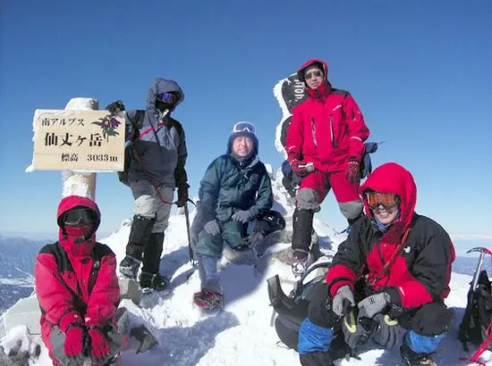 ここからは岩稜帯とのミックスであり、アイゼンとピッケルで注意して進む。これも私にとっていい経験である。11時半にようやく仙丈岳頂上に到着。まずは皆さんと握手を交わす。深谷さんは感動のあまり泣いている。私も感動し言葉を失ってしまう。それにしても360度大パノラマである。来週向かうであろう八ヶ岳もくっきり見え、夏に縦走した北岳、間ノ岳もすべて真っ白で綺麗であった。私は今まで単独であったので雪山には行けなかったが、この三峰へ入会してこうして素晴らしい雪山に自分の身を置くことが出来たのである。本当に入会してよかったとつくづく感じたのである。