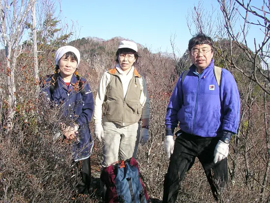 晩秋のこの頃は日が暮れるのが早い。既に辺りは薄暗くなってきており早く降りなければ真っ暗になってしまう。そんな焦りからかルートを外してしまう。左に分かれる踏み跡を見過ごしてしまい行き詰って右往左往する。戻って分岐から左のしっかりした踏み跡を辿る。既に辺りは真っ暗で懐電歩行となる。しばらくははっきりしていた踏み跡もすぐに不明瞭となりまたもや右往左往しながら踏み跡を捜し求めることになる。ついに見つけることができず方角を定めて適当に下って行くことにする。車道の灯りが見えているので近くまで来ているはずなのだが真っ直ぐは降りられず尾根の末端と思われる所を左にトラバース気味に行くと遠くに橋が見えてきた。あの橋はなんだろう?と思いながら松林の中をとにかく下って行く。どうも左に寄り過ぎているような気がしたので今度は右にトラバースしていくと大量のゴミが散乱している場所にでた。先頭を歩いていた三澤さんは、「ゴミを下から投げ上げるやつはいない、上に何かあるんだろう」と言って登って行くと廃屋に行き当たった。廃屋とは言え家があるからにはそこに続く道があるはずだと探してみるとしっかりとした道があった。やれやれ、しかし夜の廃屋は不気味だ。この道を辿ると出発前に確認しておいた場所にでることができ、扉の下を潜り抜けて車道にでることができた。