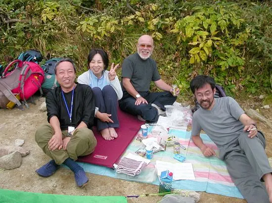 2時間ちょっとで山荘下のテントに到着。脇には、脱落したはずの人々が宴会をしていた。具合はすっかり良くなったらしい。身なりをといて宴席に加わった。