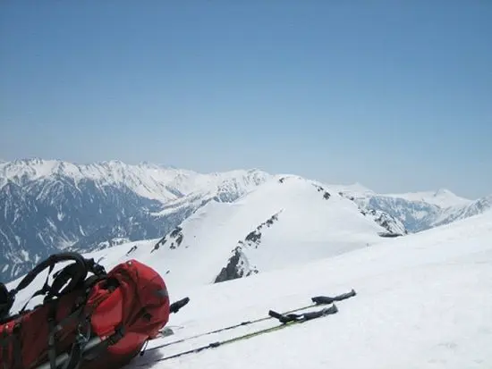 今回の山スキーでは、荷物をどの程度持って行くかで悩みました。完全小屋泊まりとして軽量化を図るか、5月の北アルプスということを考え、テントを持ち縦走型重量荷物とするか。
