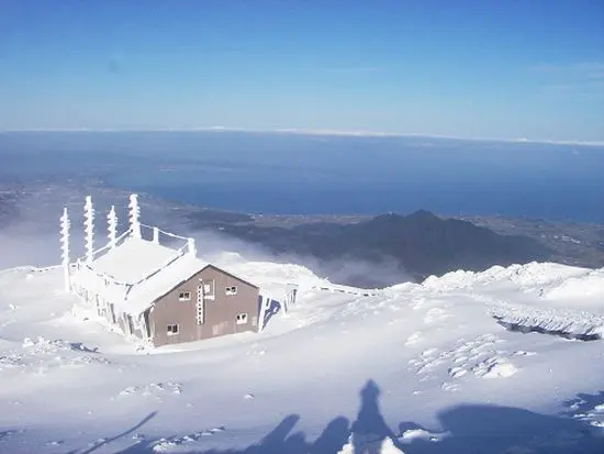 下山しようと、頂上小屋に入ると、登山者が一人休んでいました。ちょうど今、登ってきたところだといいます。