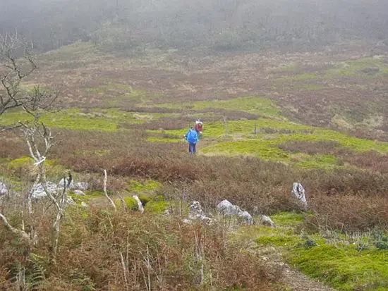 昨日と違って今日はフツーの山歩きの日。天気はスッキリしないが鈴北岳から御池岳を周回する日帰りコースにとりつく。最初は暗い植林帯を一登りで鞍掛峠に立つ。見たことのない景色が新鮮だ。地図上では実線の登山道だが落ち葉に埋まって不明瞭なところが随所にある。あまり気軽に歩くと迷いそうだ。変化の少ない山道も鈴北岳を越えると景色が変わる。広大な草地が広がり、石灰岩の岩塔が点在する日本庭園に出会う。
