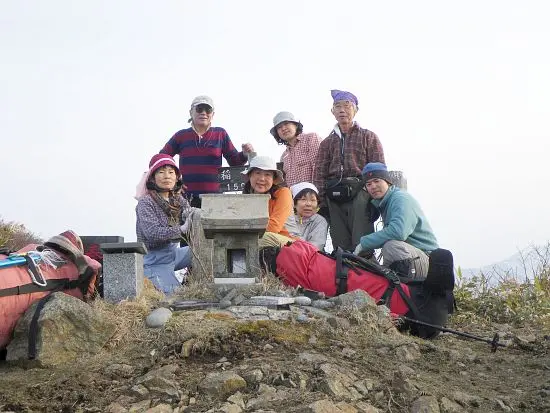 あと数歩で稲包山・・・。疲れているのであるがどうしても足が先走ってしまう。周囲の素晴らしい景色なんぞ目に入らない。なかなかたどり着けなかったこの山を、この素晴らしき縦走の終着点として迎えることができ感慨一入である・・・。