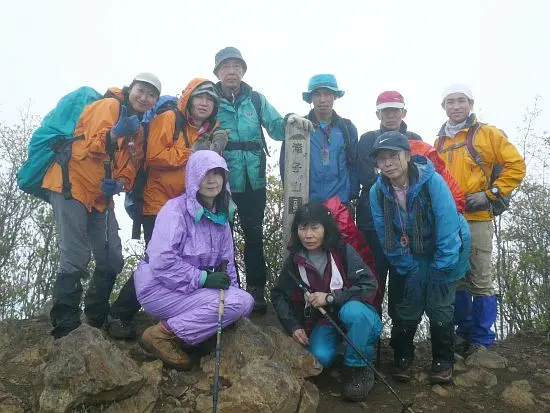 一方、鞍吾山から滝子山までの尾根は岩場が多く、時に大岩に行く手を阻まれることもありましたが、それら岩に張り付くようにイワカガミが群生していて可憐なピンク色の花が私達を歓迎してくれました。また、御正人ノタル付近にはヤセ尾根があり、そろりそろり慎重に通過する場面もありましたが、みんな揃って無事に山頂を踏むことができました。