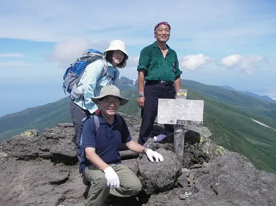 さて、これで今回の北海道百名山で計画した、羅臼岳、斜里岳、大雪山(旭岳)のすべての山の完踏です。3人で堅い握手をして下山です。