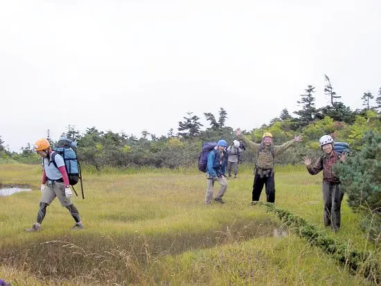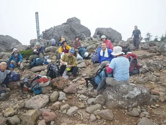 やっと藪を抜けると草原でした  大休止をして人形石を目指しました。人形石に着いたときは集中時刻より1時間40分も遅れてしまいました。