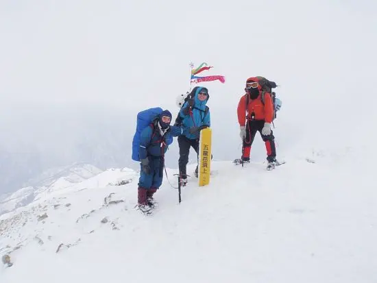 ギャップを乗り越えようとしている時にブロックが崩れ、ビビったトップが動かなくなる場面もあった。何の根拠もないが「大丈夫、問題ないから」とスピーディに越えることを促す。十字峡からの尾根が合流する1,833mピークが近づくと神経を使う登りから解放され前方には穏やかな雪尾根が広がっている。S字峡から我々が登ってきた尾根がガンドウ尾根の主尾根かと私は思っていたのだが実はそうではなく十字峡から1,833mで合流する尾根のほうが主尾根らしい。十字峡からの尾根はかなり厳しそうに見える。