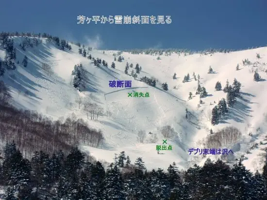 なお、雪崩発生の2日後にJAN(日本雪崩ネットワーク)が調査に入りました。私が直後に推察した記録とは若干違いますが、調査結果を参考までに掲載しておきます。