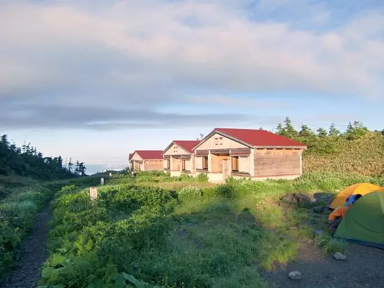 かなりのんびり登ったが、南竜ヶ馬場には14時前に到着。今日の泊まりは南竜山荘のケビンだ(要事前予約)。1棟12,000円で6人くらいまで泊まれるので、人数がいればかなり割安。今回は1人4,000円だが、自炊で山小屋の個室に泊まったと思えば手ごろな料金だ。一応、毛布、ふとんも付いている。今日は平日だから何とか予約できたが、7~8月の白山の花シーズンの週末は人気があり、早くから予約しないと取れないようだ。