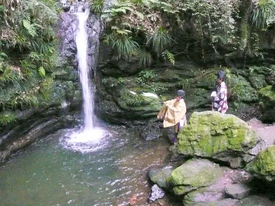 奥武蔵は、通常なら初秋~初春に行くことが多い。その時期に見る滝は、水量は乏しく『日本観光百選・瀑布の部に入選』とは、程遠い。しかし、毎年、7月第1日曜日、この滝を祭る古式ゆかしい行事が60年も続いているという。(何と、私と同い年)