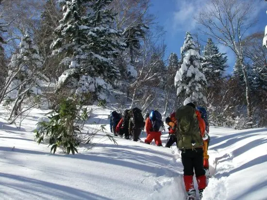 | 【12月10日】 | 駐車場出発(8:20) → 滝沢登山口【階段のある所】(9:20~30) → 休憩【ワカン装着】(10:25~45) → 休憩(11:35~50) → 水場標識通過(12:25) → 休憩(13:10~20) → 天場(13:50) |