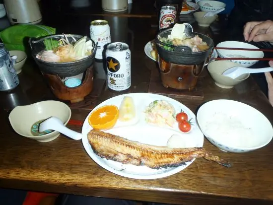 その後、食事がおいしいことで有名な赤岳鉱泉へ。冬山の小屋泊は初めてでテンションがあがる。小屋番に一部屋4千円プラスで個室になるがどうする?と聞かれたが、小屋泊りだけで充分セレブなのでお断りして、アイスキャンディを見学。アイス利用料千円とのことで、その千円はビールに消え、飲みながら夕飯を待つ。が、相部屋棟のストーブが調子悪く半端なく寒い。スタッフを呼んでも直らず。個室棟はストーブギンギンでこたつ完備。なんなんだ、この差は!と、次回は絶対個室にしようと皆で誓い合う。お楽しみの夕飯は、大きなほっけに具沢山鍋と非常に豪華で幸せに浸る。