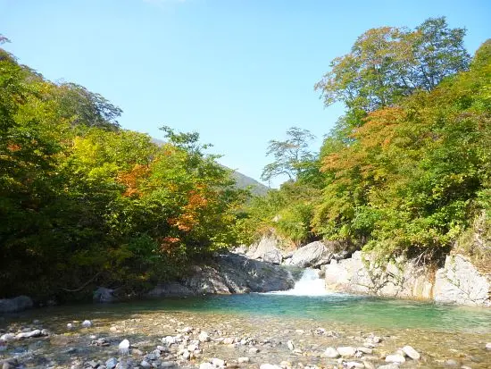 | 【10月8日】 | 駐車場(8:30) → 林道ゲート(9:20) → 渡渉点(11:25~50) → 大石沢出合(14:00) → 二俣(16:10)【幕場】 |