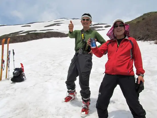 1時間の滑りのために3日もかけた、ゴーカ山行。日々お忙しいオジサマ方、しっかりのリフレッシュとなりました。