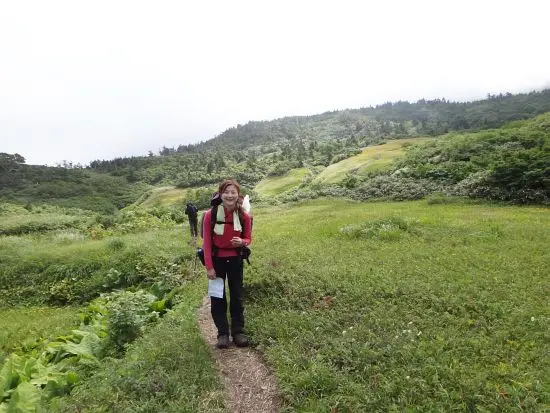 そんなこんなで、この雪倉岳に今足を踏み入れていると思うと夢みたいだったのだが、時折吹く風はどんどん強くなっていて、息もできなくなるような瞬間が何回もあった。台風も近付いているし、途中でこれに雨が加わったら、相当な暴風雨になる、とにかく急ごうと思いずんずん進んでいった。暴風雨になったらどうしようなどと考え出したら、ちょっと不安になって、後ろを振り返ると茂吉さんと峯川さんがいて、心強かった。小心者には一緒に歩いているパーティの仲間の存在は大きい。