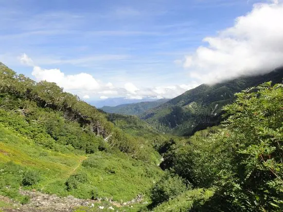 雪倉岳の標高2,100メートルから2,400メートル辺りの岩壁には銀の鉱脈があって、雪倉銀山は明治末期まで採掘が行われていたという。鉱山道は、その当時の雪倉銀山の作業用の道だったそうだ。今は登山道の途中で“塩沢精練所跡”とか“鉱山事務所跡”とか“飯場跡”といった地名(標識)が残っているだけとなったが、地名から、当時の様子が偲ばれる。明治27年にはウエストンが、この道から白馬岳に登ったという記録がある。その当時、ウエストンは、ここの銀山の監督が、大変親切にしてくれたと「日本アルプス登山と探検」に書いている。今は跡形もないが、この道もなかなかロマンがある。