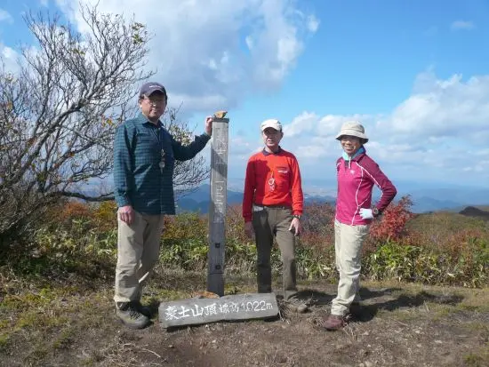 9時より登山開始、道はすぐ急登となるが、道は全体的によく整備されて歩き易い。紅葉にはまだ早いようだが天気が良いので皆の足取りも軽い。周りはアカマツが多く、マツタケを期待するも見つかるはずもなし、怪しげなナラタケもどきを収穫した。その後ブナやミズナラ林となり遂に見事なクリタケをゲット、皆の顔に笑顔がこぼれた。