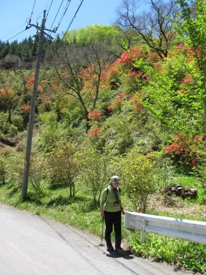 まずは上野村にある笠丸山の大平登山口へ。標識がないため分かりにくかったが何とか発見し、午前7時過ぎに川崎リーダの元、皆が出発。私は下山口となる住居附(すもうづく)に車を移動し、新高畑橋から8時半に登りだす。今回は笠丸山頂上で合流しようという計画だ。昨日の大雨で空気は澄み、はるか遠くの山々までが見渡せる。点在するアカヤシオが新緑の森に鮮やかな彩りを加え、美しい。