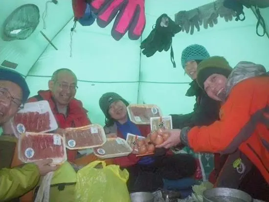 この日は青空と皆さんのラッセルの記憶しかないが、またもや夕飯は豪勢な杉本さんの餡かけ皿うどん! 冷凍の海鮮やお肉が出てきて本格的。疲れた体にだしの効いた餡が嬉しい。こちらもあっという間に完食。実はお誕生日だという箭内さんを祝って、この日も幸せに床に就いた。