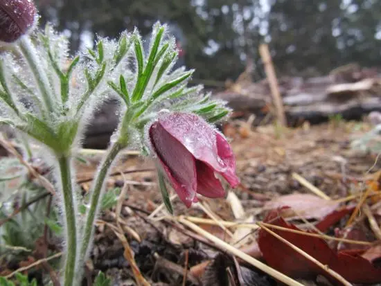 さらに30分ほど歩くと、今回の山行の目的である絶滅危惧種「日本おきな草」の自生地に到着だ。花期には1週間くらい早かったようだが、柵の中では多くの株が紫色の可憐な花を咲かせていた。適切に保護し、普通の路傍の花に戻る時代が来ることを望むばかりである。その後、新堀神社に下山し、2時間の里山ハイクは終了となった。