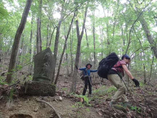 あとは下山ですが、多くの人が訪れていたのか踏み跡がかなりしっかりしておりました。首なし地蔵、烽火台など歴史的な遺構がありました。馬頭観音がいくつかあったので、斑山へのこのルートはかなり昔から馬も通る山越えの主要街道だったようです。歴史のあるルートが好きな私にとって嬉しいルートです。