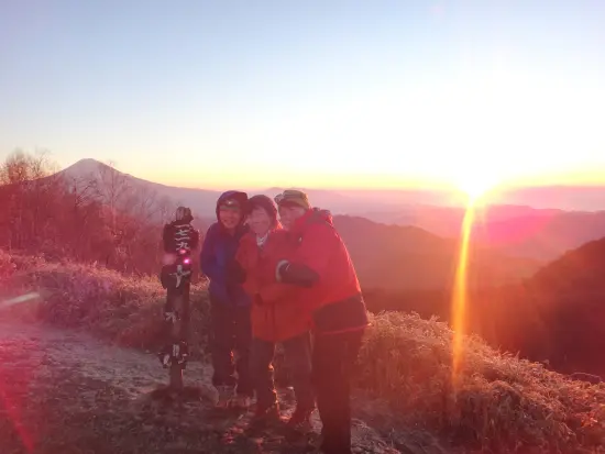 初日の出に照らされる駿河湾と富士山をたくさん写真に収めることができました。みんなで記念撮影などをして、一旦テントに戻り、峯川担当のお雑煮をつくり、朝からお腹いっぱいとなりました。