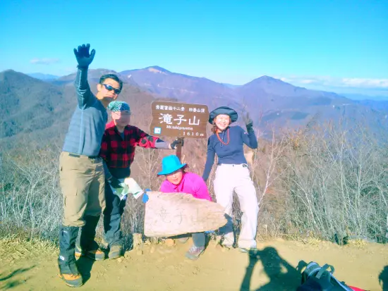 12時半頃、稜線に出て、最初のピーク滝子山に登頂した。頂上からはこれから歩く峰々を手に取るように見渡せた。