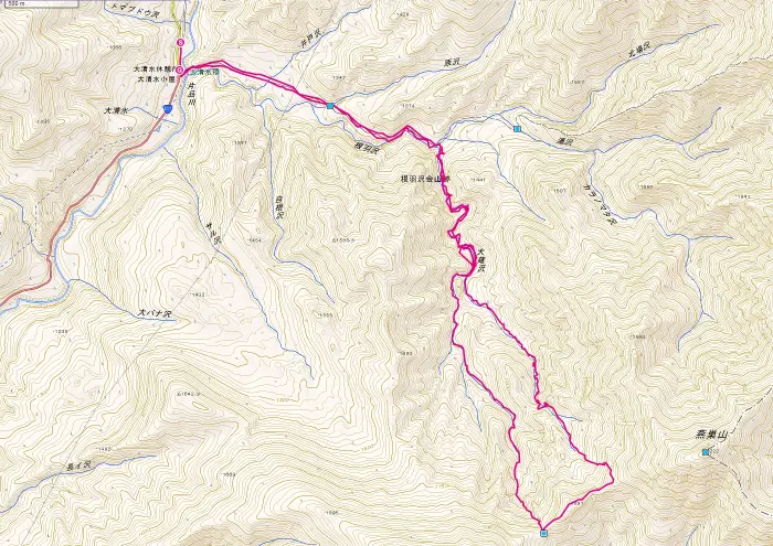 | 【6月25日】 | 大清水(10:46) → 物見橋(11:07) → 根羽沢金山跡(12:31) → 幕場(13:37) |