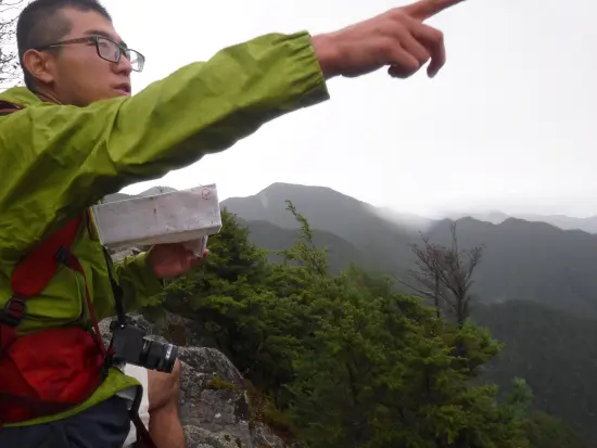 風も強くなってきて国師ヶ岳山頂では風雨がとんでもないのではと思いました。国師ヶ岳までの階段がつらいです。風雨がとんでもない国師ヶ岳では休憩をせずに手前の茂みで一本とりました。10時40分くらいでした。その先は樹林帯なので多少が助かりました。