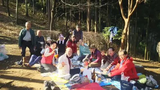 10分程度登ったところが順礼峠で、ベンチがあり、風も遮られ、陽が当たり素晴らしいところで食事をする。アンコウのキモがどっさり入ったアンコウ鍋とエビ、カニの入った海鮮寄せ鍋で、銘酒の差し入れもあり、家内の知り合いの若い娘さんも来られ、田原氏のヨーデルがこだましたのであった。14:30に七沢の方に下山、解散しました。