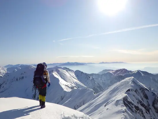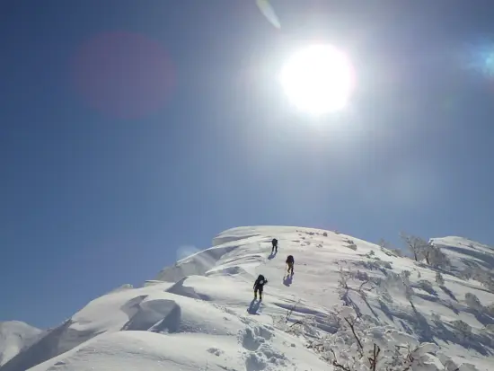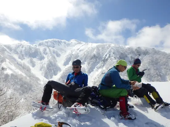 仙ノ倉北尾根はこれで3度目になる。1回目は6年前にチャレンジしたものの、雪が安定せず雪崩の危険性があるとの判断でシッケイの頭を目の前に晴天の中で敗退となり、2回目は2年前に総勢8名で登頂した。しかし天候は悪く軽傷者も相次ぎ、その時の計画であった谷川岳肩ノ小屋への縦走は断念して平標へと抜けた。今年こそはと一念発起して、人数を絞り平日休み&予備日を取って臨むことになった。 仙ノ倉から谷川縦走の3月の記録がネットでもほとんど見つからず、一体どんな状態なんだろうとワクワクと緊張が入り混じった思いで出発した。 当初土合駅に車をデポしようと考えていたが、敗退の危険性があることや、土合駅にデポして電車で土樽に向かった場合一番早い電車でも8時半と出発が遅れる事などを考慮して、土樽駅に直接車で向かう事にした。 湯沢のインターを降りていつも入るセブンで食料を調達する。店内は相当な数の客でごった返しているが、ほとんどがスキーヤーとボーダーだった。土樽の駅でパッキングを終え7時過ぎに出発。当初は曇っていたが徐々に雲が取れてきて、いざ北尾根に取りつく頃には青空が広がり始めた。取付きから最初の数百メートルはワカンを装着して登るものの、急登でなかなかペースがあがらない。今回ギリギリでの参加となった新人の早川さんは体力に任せてグイグイと先頭で隊を引っ張っていく。後ろからのんびりとついていくと11時半には小屋場の頭に出た。ここで登山道は南東に向きを変える。 以前ここで、確か南西気味に直進してしまい来た道を戻った事を思い出した。