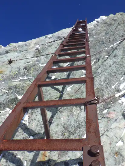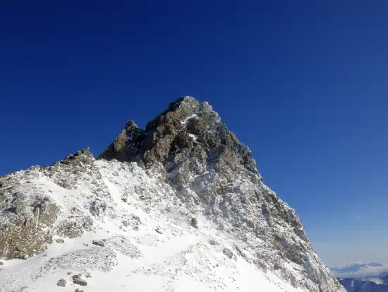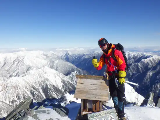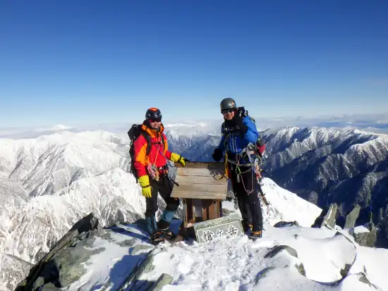 既に山頂には数名の登山者の姿が見える。歩き慣れた夏道ルートを進む。一歩一歩確実に高度を上げ、ひとつ、またひとつとハシゴを越えてようやく穂先に立つ。ここまでの道のりに比べれば非常に簡単な登りであった。