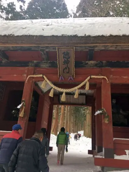 帰りは来た道を戻るだけ。予定通り15時過ぎに駐車場に着いた。黒姫山に登っていたら途中敗退かヘッデンになっていたかもと佐渡山登頂を正当化しつつ、今夜の宿「横倉旅館」へ移動した。ここは中社のすぐそばで木造の古い建物は趣があり、スキーヤーの宿となっていた。ボリュームのある食事と広い部屋でのんびり寛ぐことができた。翌日は戸隠神社の下社(宝光社)、中社、奥社と神頼み3段重ねをして帰途に着いた。