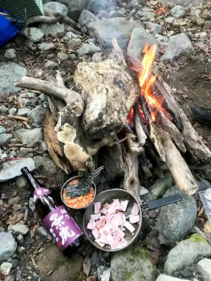 幕場は右岸の広々としたところで、おそらく釣り師が整備している場所なのだろう。