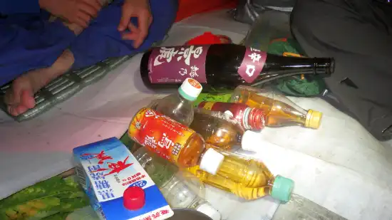 幕場付近で竿を出したものの、イワナは獲れず、今宵は軽部っちが担いできてくれた景虎と林道で採ったヒラタケで宴となった。