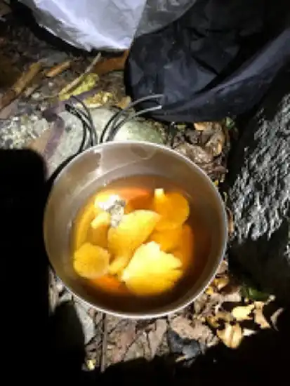 途中目が覚め、自分だけタープの下に移動して、横になっていたところ、暫くすると、吐き気で目が覚め、タープ横でいきなり嘔吐してしまった。その後も気持ち悪く、なかなか寝付けない。横で寝ている3人はスヤスヤ何事もなかったかのように寝ていたが、たき火付近で急に激しく嘔吐する音が聞こえたかと思うと、軽部っちがタープに入ってきた。声をかけると、津田ちゃんも吐いていたという。目が覚めた和田っちは平気だと言ったが、直ぐに吐き出した。皆キノコに当たったようだ。