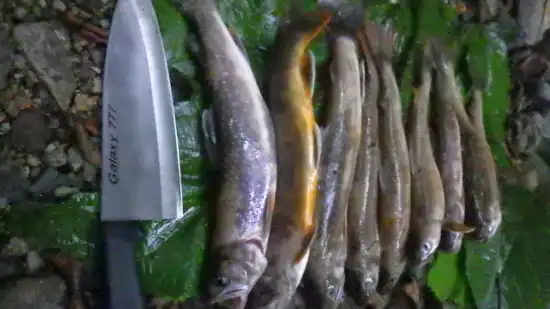 今日が最後の晩餐である。酒はまだ潤沢にあった。イワナの香草焼き天ぷらが、食卓を飾ってくれた。