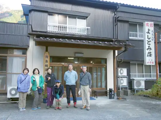 これまで誰とも行き会わなかったが、安倍峠で大谷崩行きをしつこく勧める不思議な集団と遭遇。今思い出しても「大谷コール」は意味が分からない。その後、梅ヶ島温泉でおでんとビールをいただき、よしとみ荘へ戻って温泉で汗を流した。梅ヶ島温泉のお湯はとろみが強く、本当に癒やされる。夕食は地のもの中心でビールも進む。いよいよ核心の部屋飲みではバタコさんの日本酒で大いに盛り上がり、なぜか課長という微妙なあだ名を頂戴することになった...。