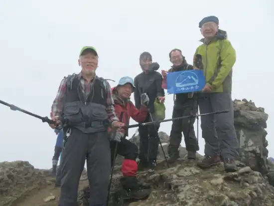 翌朝起きたら雨だった。雨天や沼の平ルートのコースタイムについての不安がチームに漂ったのを察知して、明さんが「ロープウェイを使って登りましょう」と別ルートで登頂するという英断をしてくれた。それにより、ホッとした空気がチーム内に流れた・・・気がする。
