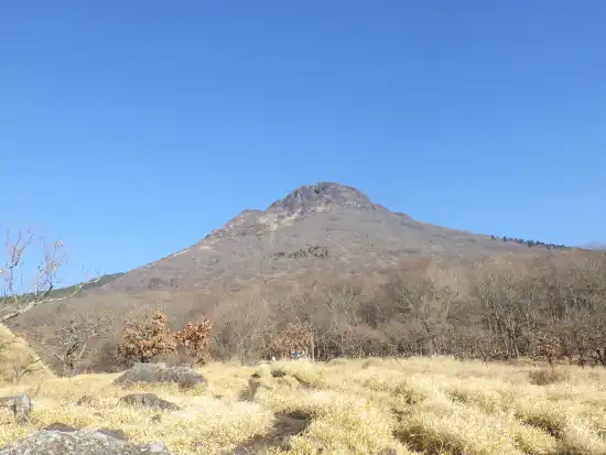 今日も快晴だ。今日が最後の登山に予定していた由布岳だ。由布岳登山口から平らな草原を抜け、なだらかな疎林を歩いていると、ガサガサという物音。少し離れたところに鹿がこちらを見ていた。近付くと5~10m位の距離を保ち、逃げない。その鹿を気にしながら進むと、気がつけば鹿の群れの中。何でこんなところに人間がいるんだ?というような目でこちらを見ていた。奥多摩なら、すぐに逃げるのに。ここではハンターが居ないのだろう。人間を全く恐れていない。GPSで確認したら、登山道から大きく離れてしまっていた。鹿の群れに気を取られて、登山道を見失っていたようだ。登山道に戻り登って行くと、西峰直下は鎖場になっていた。意外と高度感のある岩場だった。西峰からの眺望を楽しんで、時計回り東峰へ向かった。東峰には団体のパーティーがランチタイムだった。騒がしくてごめんなさいと謝っていたが、三峰女子と比べれば大したことはない。来た方向を少し戻り、日向岳経由で下山した。