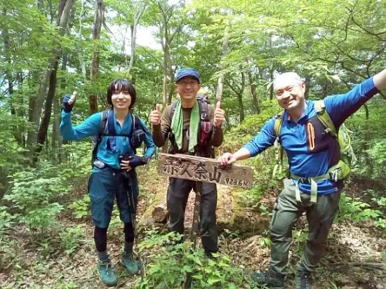 下山路は南斜面の植林で一般登山道なので黙々と足を運び、途中キイチゴの群生地で食し、赤久奈山に寄る。