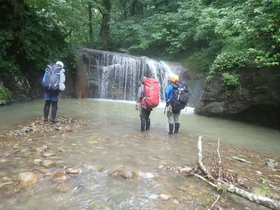 | 【7月23日】 | 幕場(7:05) → 桑木沢二俣(12:30~13:00) → 2段15m滝下(15:30) → 幕場(15:50) |