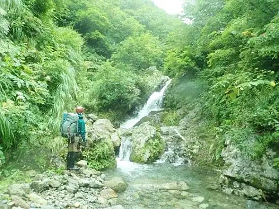 石抱橋(7:00) → 入渓(8:00) → 二俣(9:00) → 登山道(18:00) → 駒の小屋(19:30)