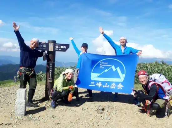 これを越えるとあとはただの源頭歩きだ。12時になったので無線交信を試みるとハギー隊と連絡が取れた。あと1時間以上は掛かりそうだと伝えておく。標高1,720m二俣で水量の少ない右手の沢に入り平標山方面への稜線に出る最短ルートを取る。最後の標高差にして100mくらいは急斜面の藪となり慣れないメンバーは結構大変だったようだ。稜線の登山道からは10分ほどで今回の集中目標であった平標山の山頂となるが、集中予定時間から2時間も過ぎており、当然ながら三峰の仲間は誰もいない。