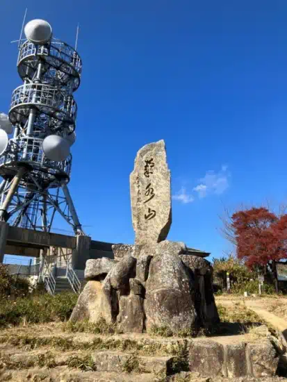 その次の目標は菊水山。最初はなだらかだったが、途中から段差の大きな階段が出てきた。手すりに頼りながら山頂へ。山頂は晩秋の紅葉を楽しむ登山客でにぎわっていた。
