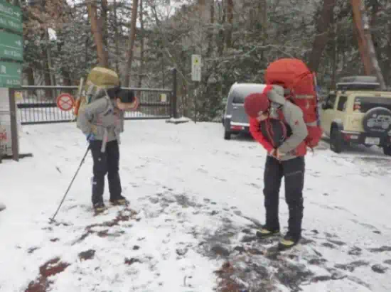 豊科駅からは梅さんに事前に予約してもらっていたタクシーに乗り須砂渡ゲートへ向かう。駐車場には4台ほど既に駐車されていたが例年ならこの駐車場が満車になる程人気なルートとの事。