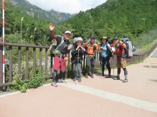 朝5時に起床し6時始発のタクシーに乗るべく乗車位置に向かう。我々の前には既に4名の登山客がいた。それから続々と登山客が増え、あっと言う間に30名ほどの人数まで膨れ上がった。我々は第二便に乗ることができスムーズな出だしとなった。途中落石により道の崩壊があったため、第一区間、第二区間とタクシー乗車の区間が別れており、間の1.5km位を徒歩で通過しまたタクシーに乗って高瀬ダム湯俣登山口に向かった。