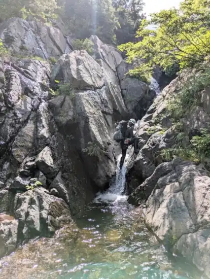 その後はゴーロの道が続き、岩々を越えていきます。小滝の連続なので水に入りたかったら登るような感じでした。私が登る所を上手に撮っていただき嬉しかったです。